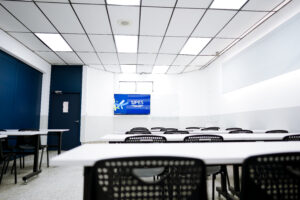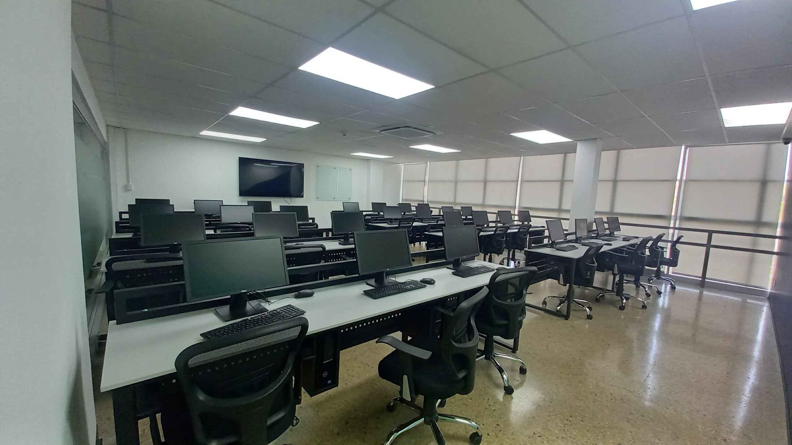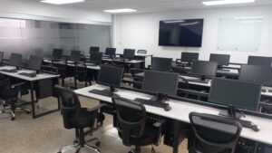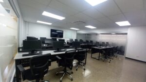 - Computadoras de última generación, software especializado, pantallas SmartTV de 75”, internet dedicado y de alta velocidad.