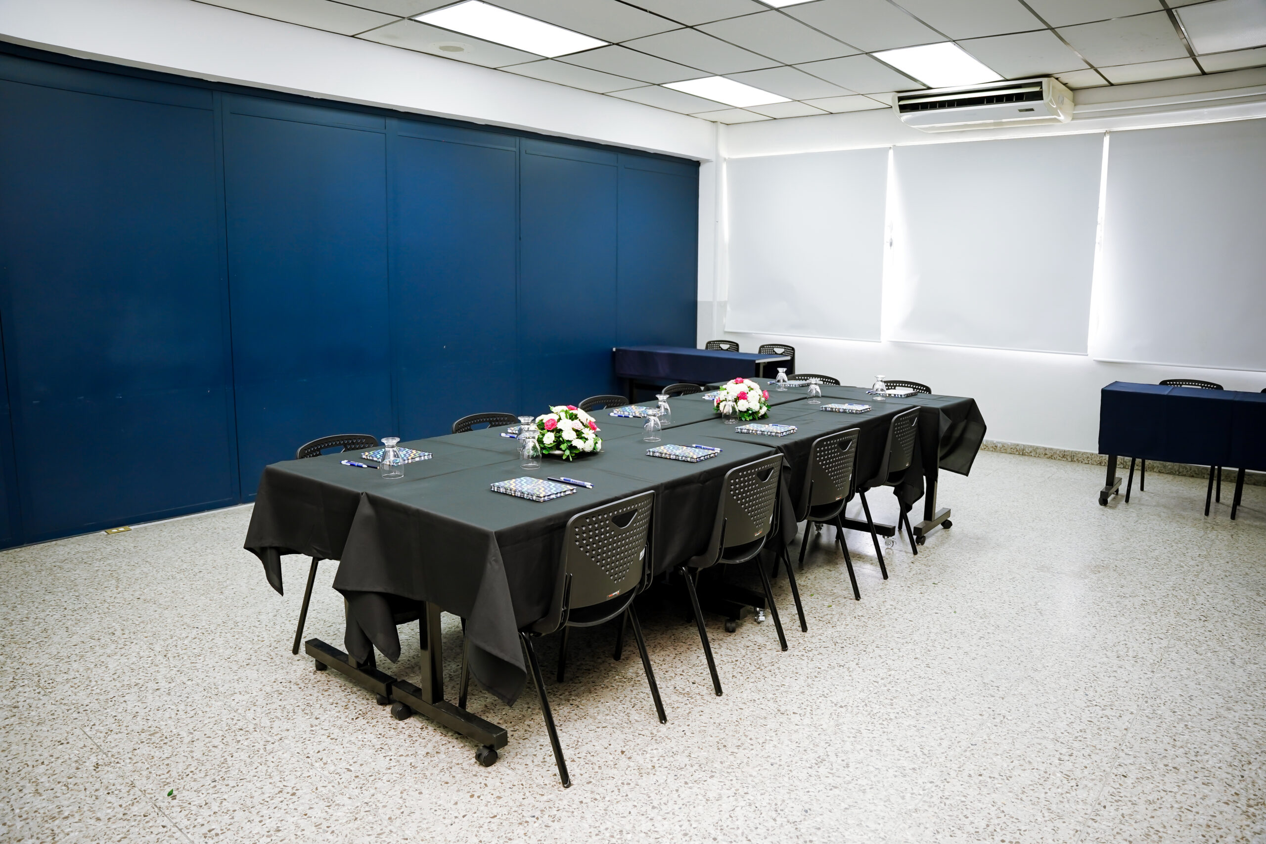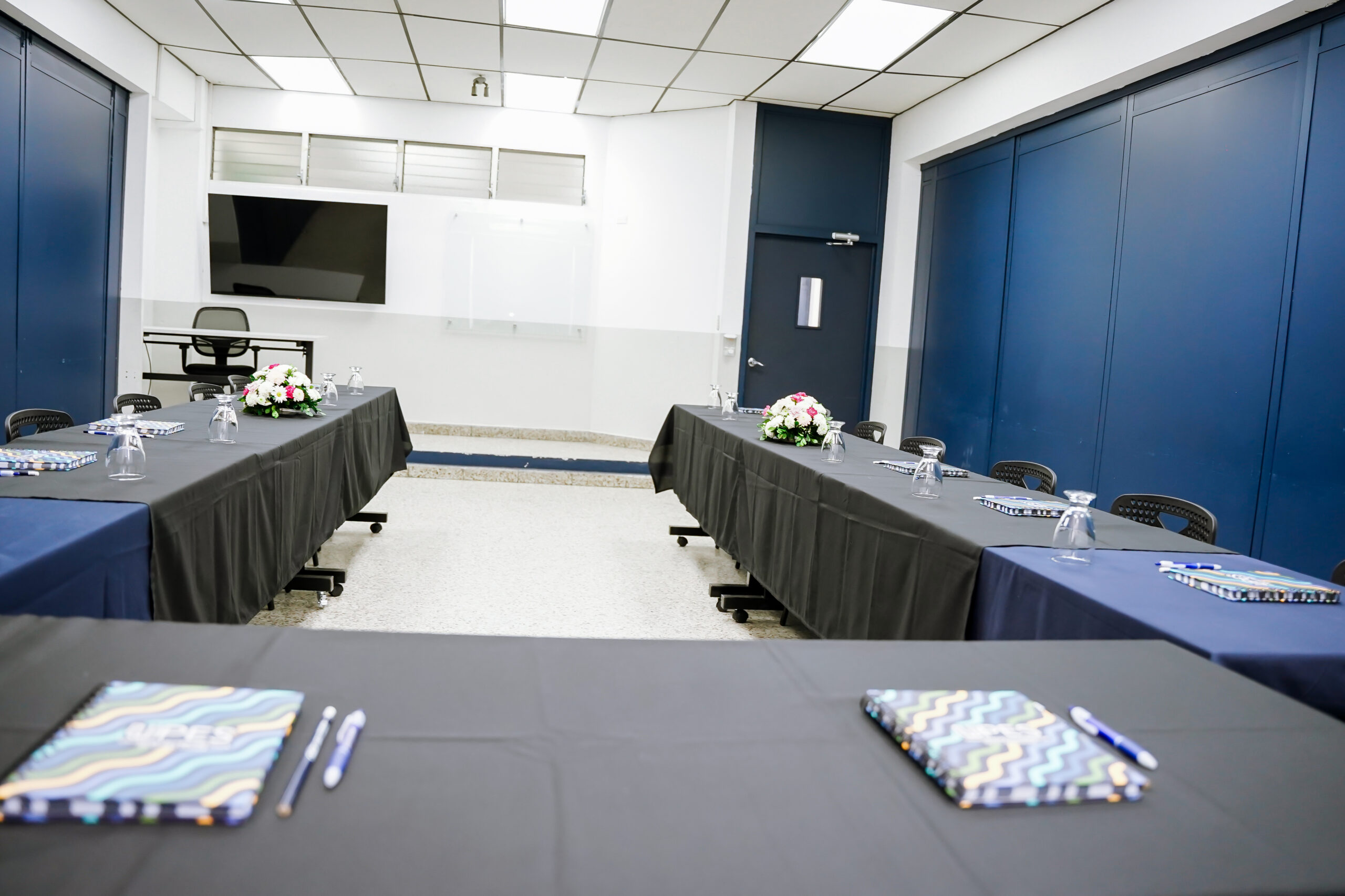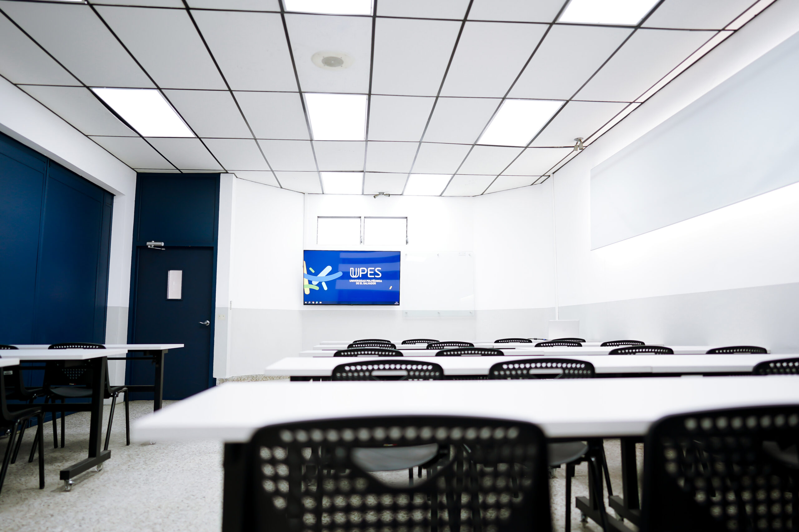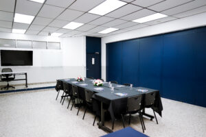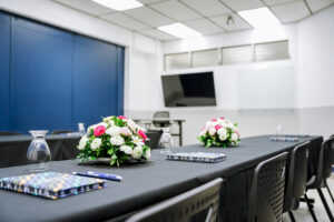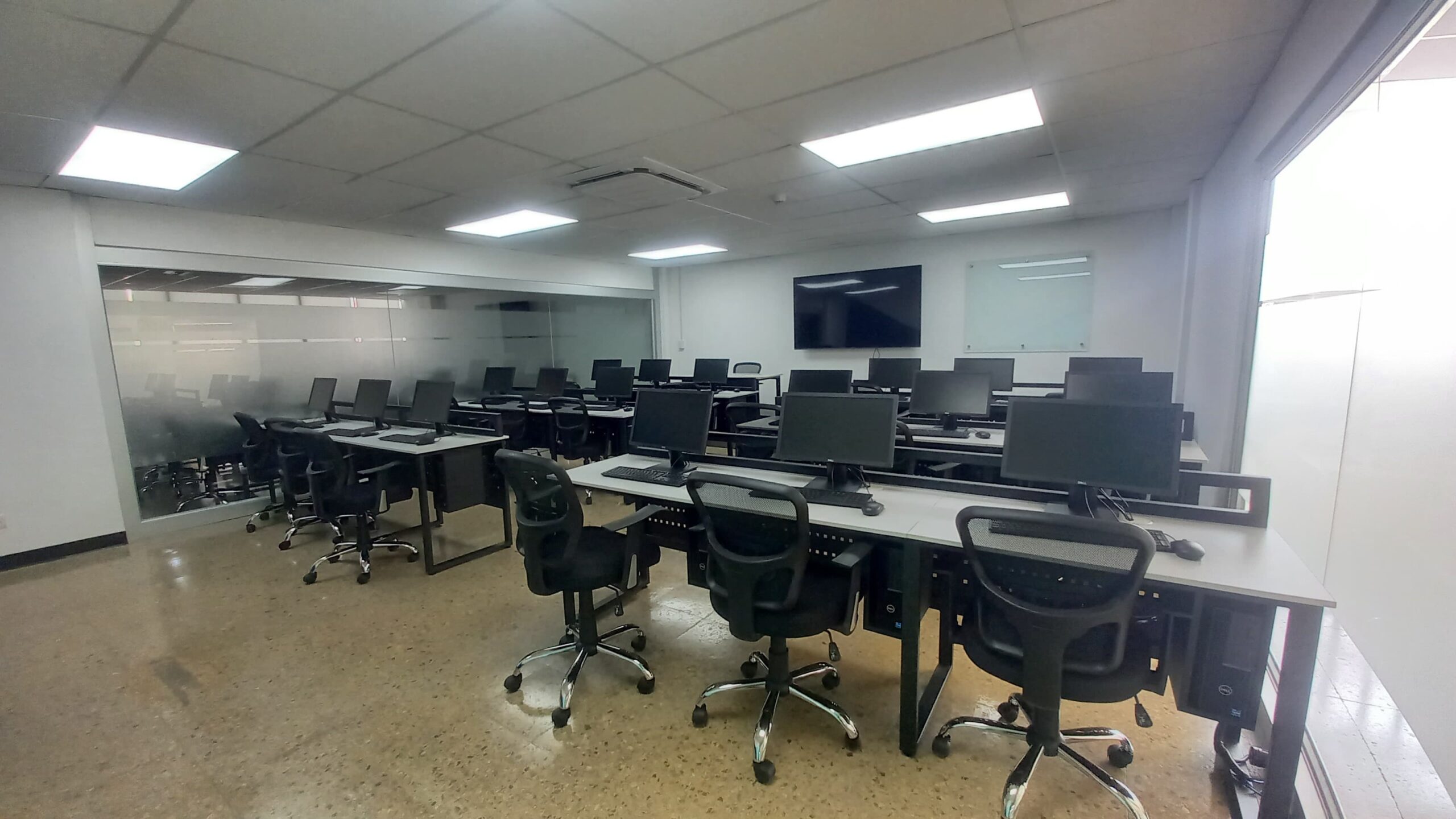 - Equipadas con pizarras de vidrio, pantalla SmartTV de 55”, sillas ergonómicas y acceso a WiFi.