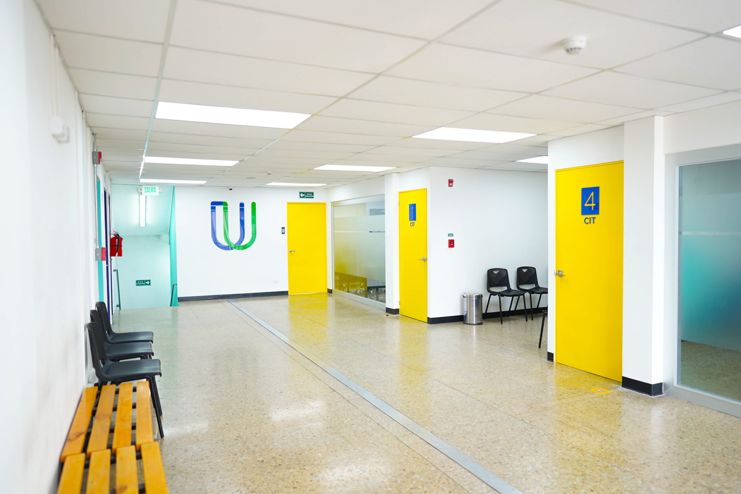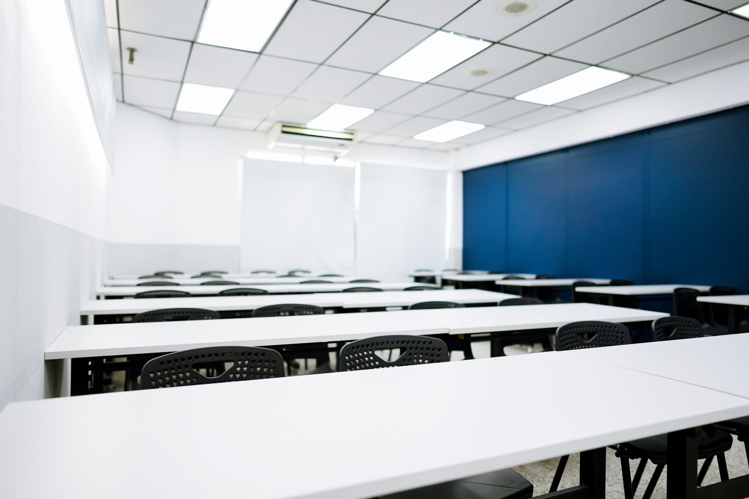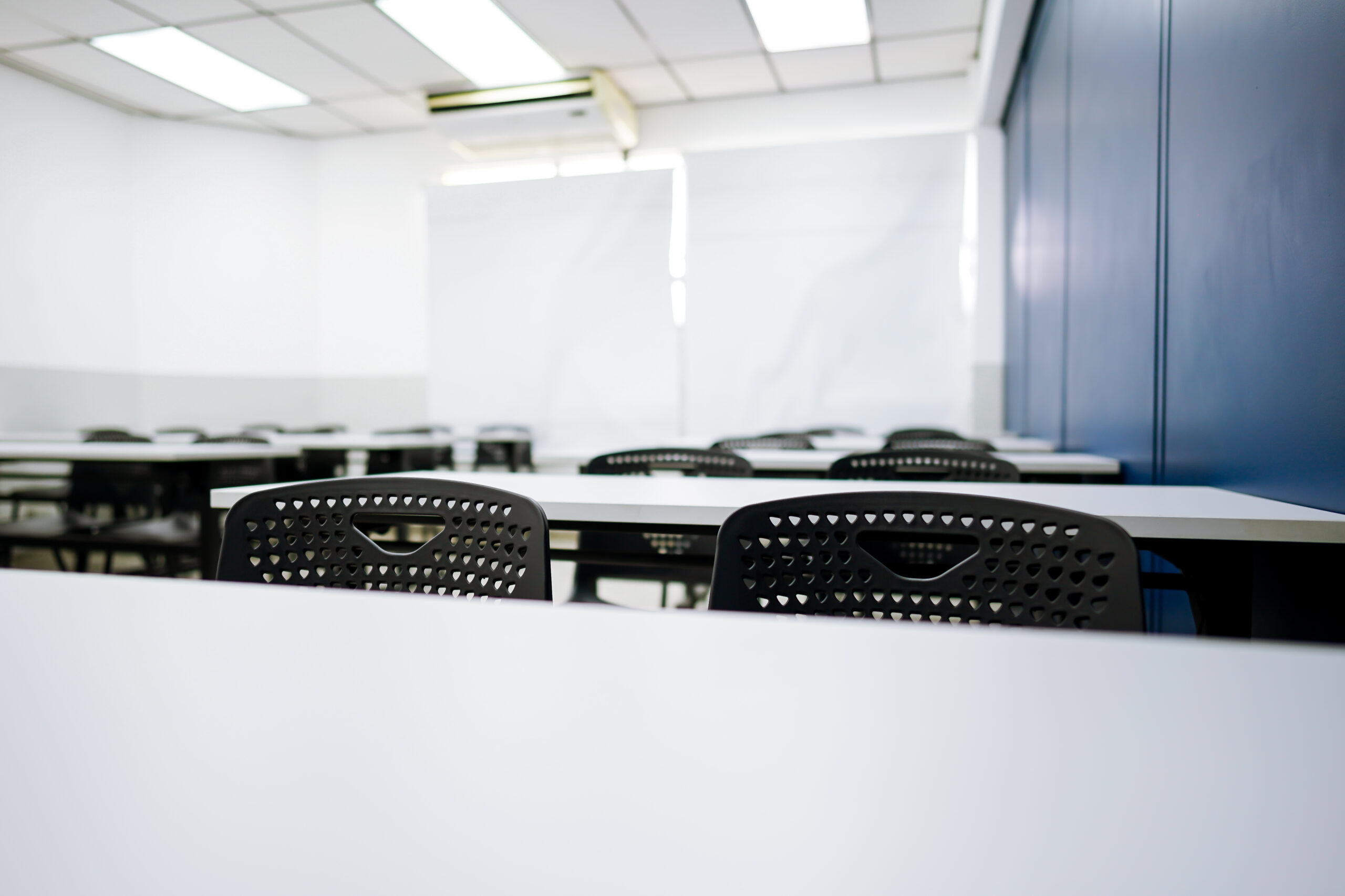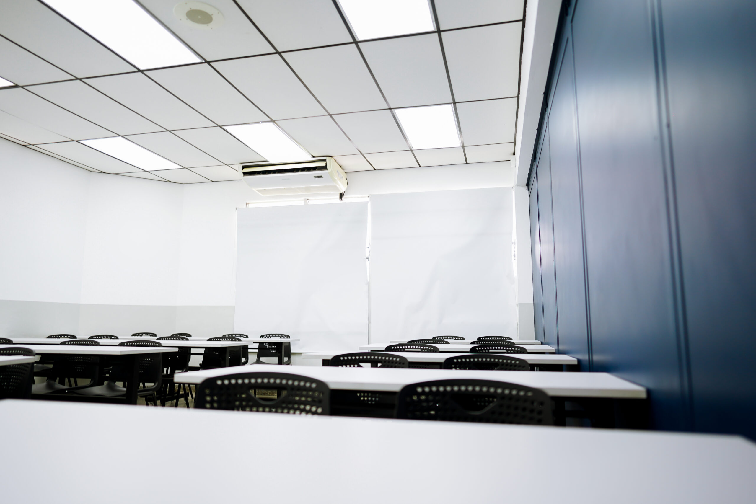 - Equipadas con pizarras de vidrio, pantalla SmartTV de 55”, sillas ergonómicas y acceso a WiFi.